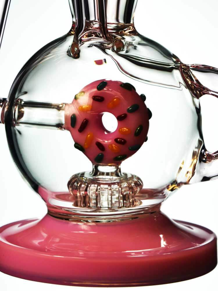 The 11” Donut Recycler by Toxic Glass features a distinctive donut-style chamber with colorful sprinkle accents that give the piece its signature appearance. Beyond the visual design, the internal structure is built to maintain consistent water circulation and balanced airflow.