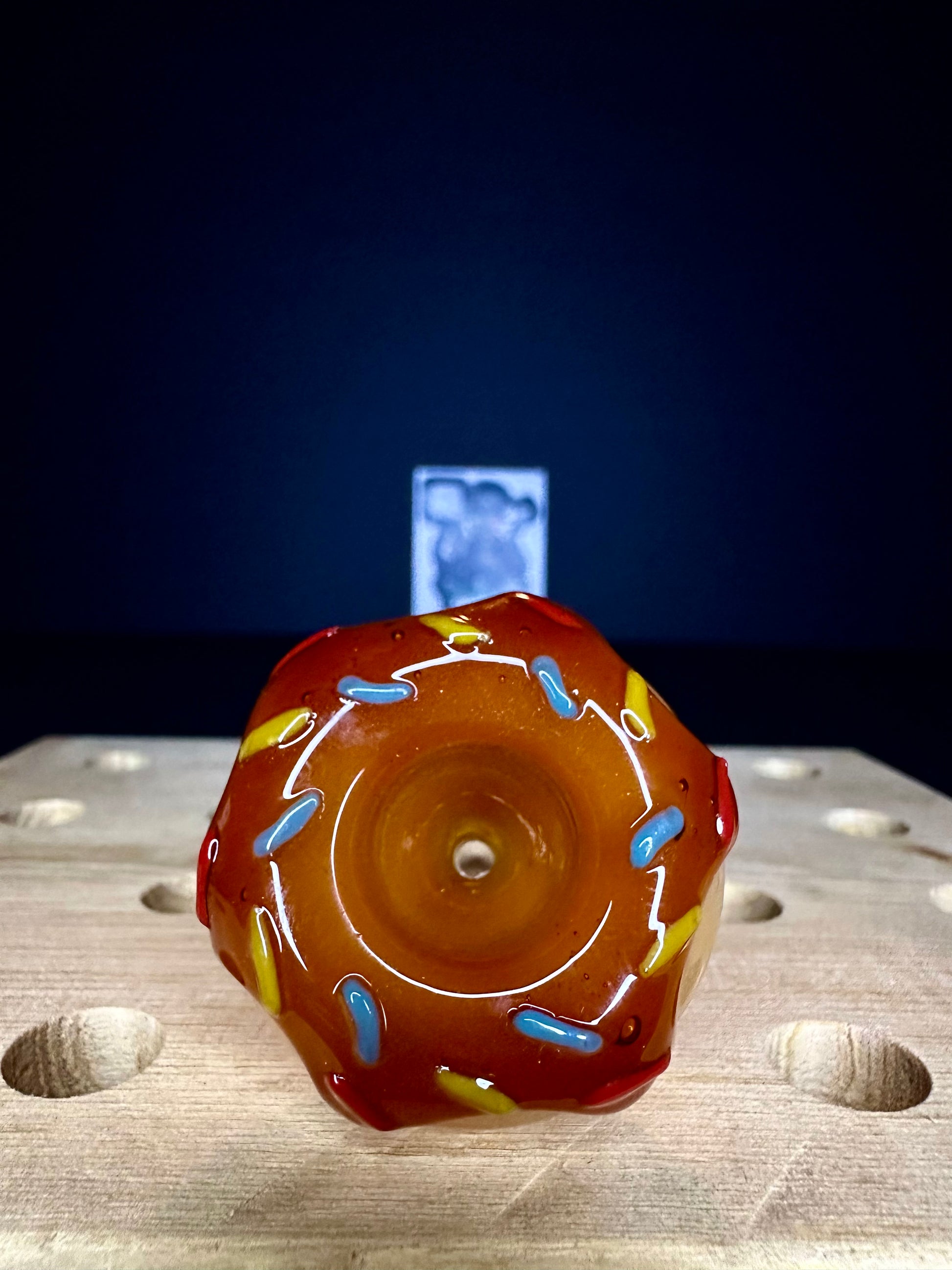 A donut-inspired glass bowl designed to add playful style and dependable function to compatible glass setups.